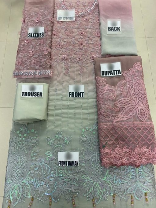 •Embriodered Chiffon Sleeves With 3D Handwork