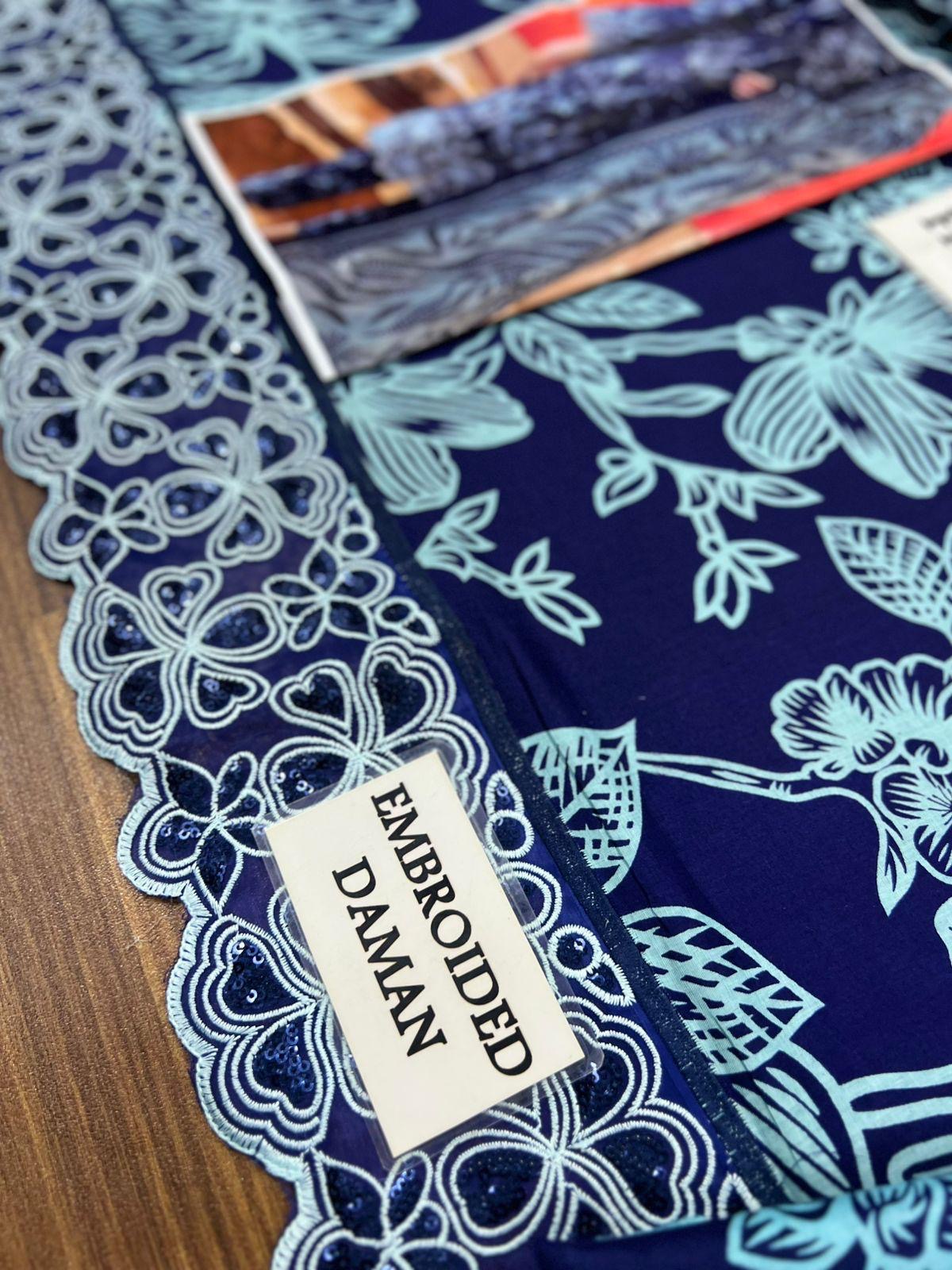 Printed Patch Emb Lawn 3 Piece Unstitched Suit MPT-2905-B- 36- Summer Collection