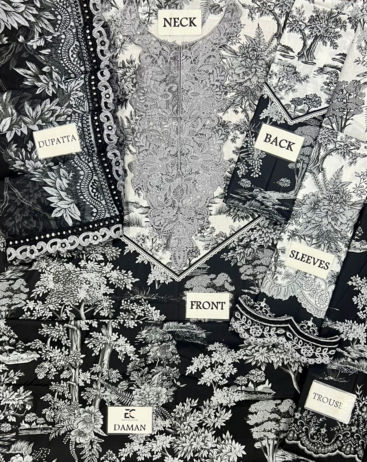 Printed Patch Emb Lawn 3 Piece Unstitched Suit MBL-MPT-2608-B-25 - Summer Collection